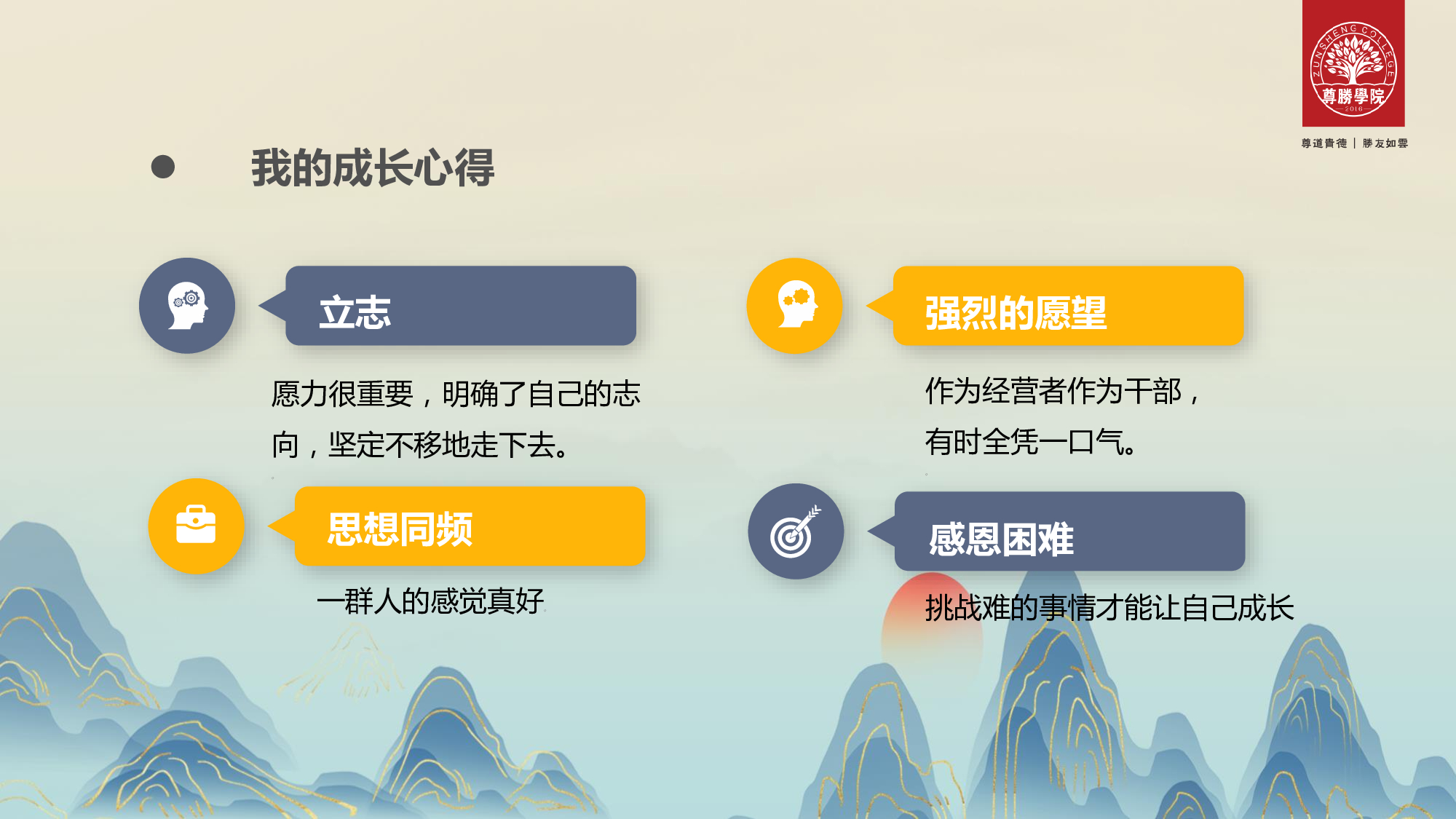 ①愿力很重要,明确了自己的志向,坚定不移地走下去。当我刚升为副总的时候还没有,是学院赋予了我责任感和使命感。